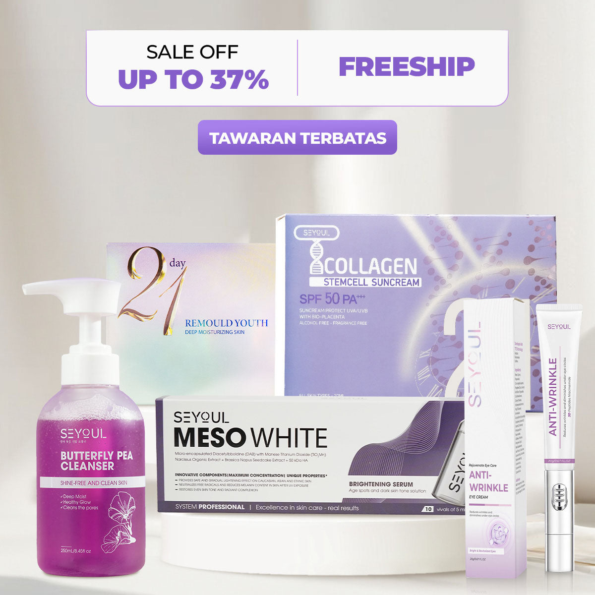 - Gunakan Seyoul Meso White Brightening Serum untuk memperbaiki pigmentasi dan menutrisi kulit agar tampak cerah.
